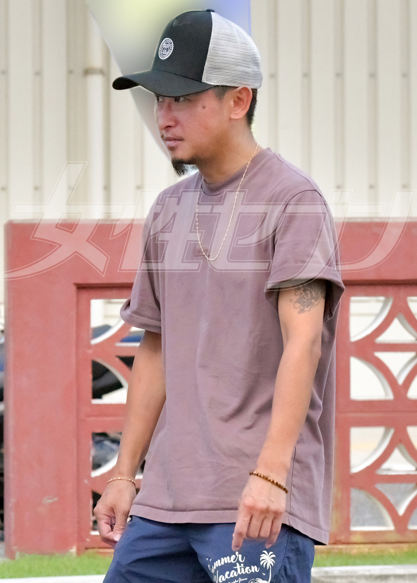 真っ黒に日焼けした肌に金のネックレスがよく映える。スリムで引き締まった体形は活動休止前と変わらず、ダンスで鍛えた筋肉質なふくらはぎも健在だ。大きく変わったことといえば、あごにたくわえたひげとTシャツの袖口からのぞく特徴的なデザインのタトゥーだろう。島の関係者が語る。